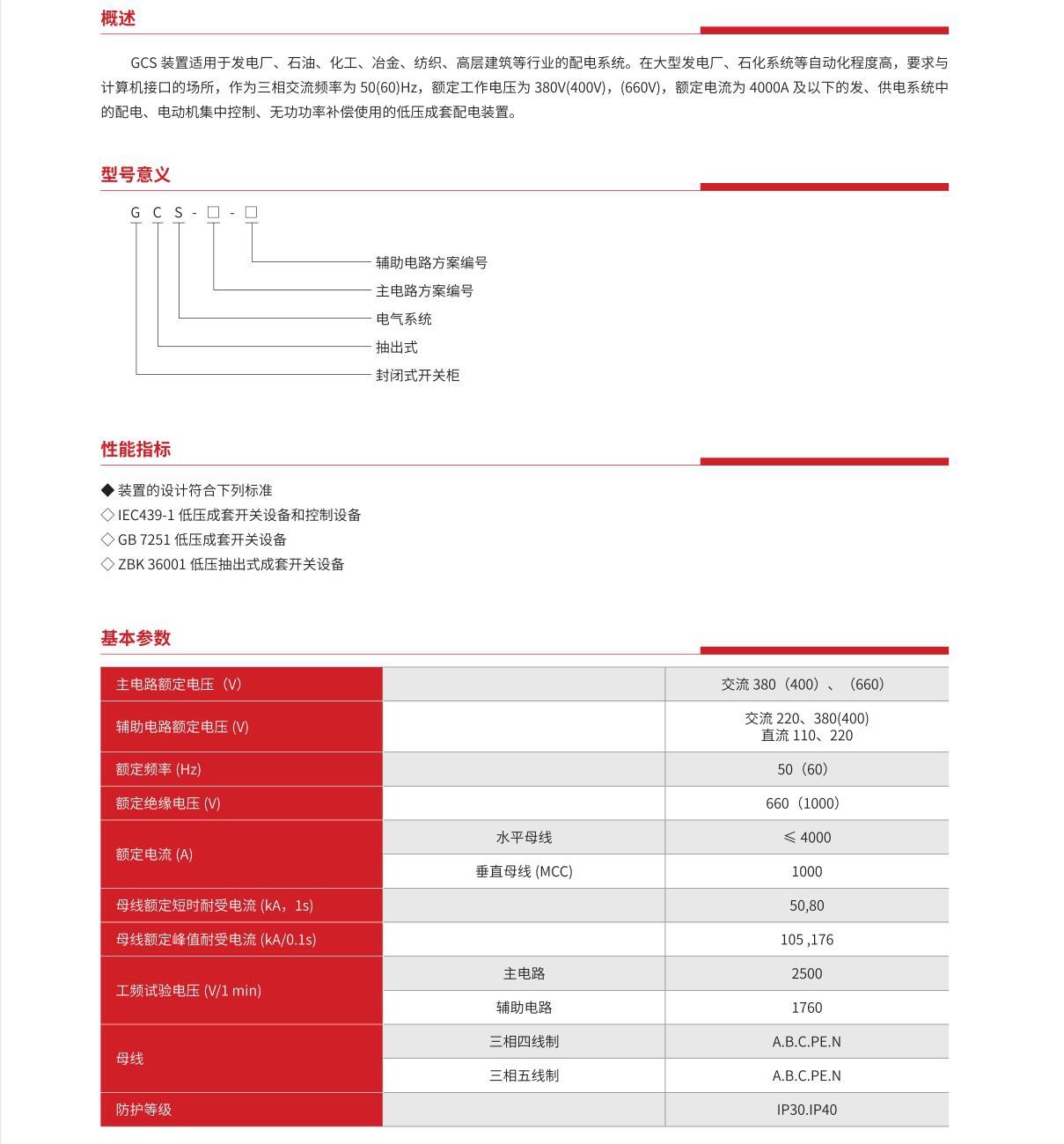 GCS 抽出式成套开关柜